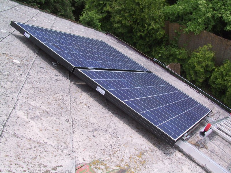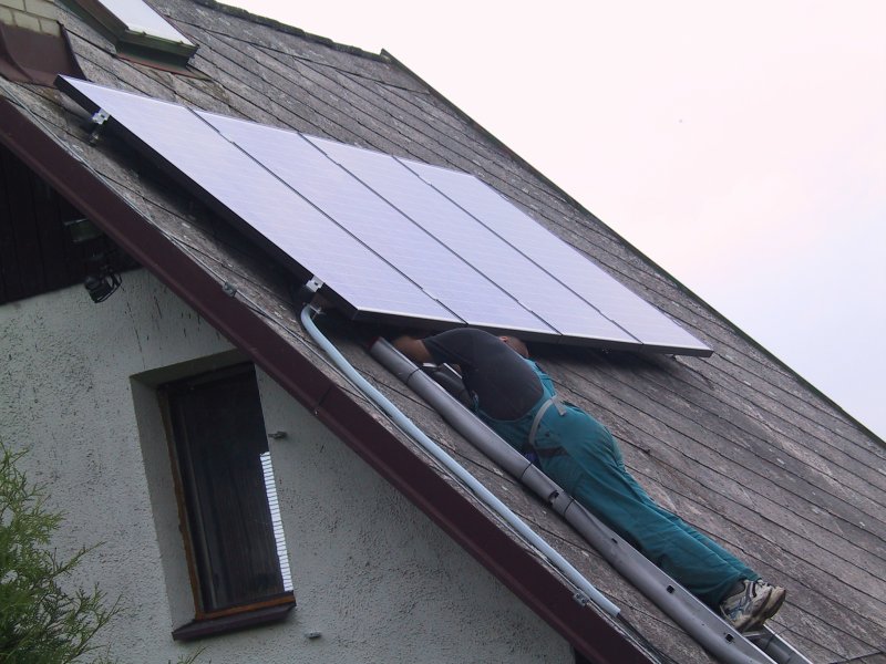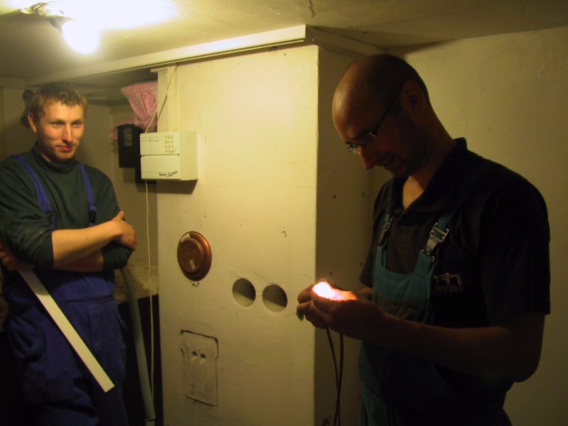 první pokus s FV panely - přímé připojení kabelů vedoucích z FV panelů na 12V žárovku z auta.