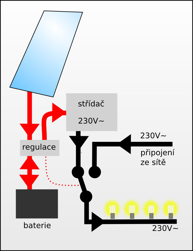 - Pro energetickou optimalizaci ostrovního FV systému, který využívá střídač (ideálně s kvalitním stand-by režimem) je třeba především všechny trvale puštěné spotřebiče (routery atp.) napájet ze stejnosměrné větve.
