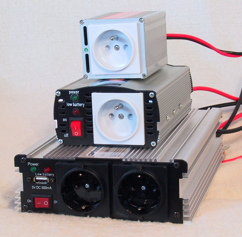 Sledujte kvalitu výstupu střídače - v zásuvce máte velice kvalitní sinusový průběh napětí. Střídače často používají modifikovaný sínusový průběh. Jednoduše řečeno je to místo sínusového průběhu spíš průběh typu schody na půdu - schody do sklepa.
